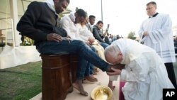 የሮማ ካቶሊክ ርእሰ-ሊቃነ ጳጳሳት አባ ፍራንሲስ ትህትናን ለማሳየት በሚደረገው ተንበርክኮ እግር የማጠብ ስርዓት ስደተኞችና ከሌሎች ሀይማኖት የተውጣጡ ሰዎችን በማክበር እራሳቸውን ዝቅ አድርገዋል።