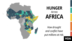 በድፍን አፍሪካ ሚሊዮኖች የሚበሉት የላቸውም፡፡ ሶማሊያን የበረታ ረሃብና ቸነፈር እያሰጋት ነው፡፡ ኬንያ በድርቅ ምክንያት የአስቸኳይ ጊዜ ሁኔታ ውስጥ ለመግባት ተገድዳለች፡፡ የሰሜን ምሥራቅ ናይጀሪያ አካባቢ ረሃብ ጠንቶባታል፡፡ በአንዳንድ የደቡብ ሱዳን አካባቢዎች ጠኔና ቸነፈር መግባቱ በይፋ ተነግሯል፡፡ በድፍን አፍሪካ ለምግብ መጥፋት አደጋ ከተጋለጡት በአሥሮች ሚሊዮኖች የሚቆጠሩ ሰዎች ቁጥራቸው እጅግ የበዛው ሕፃናት ናቸው፡፡ ቪኦኤ አማረኛ የዚህን አንገብጋቢ ሁኔታ ዘገባዎች ከመላ አፍሪካ እየተከታተለ ያቀርብላችኋል፡፡